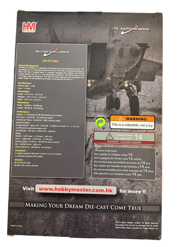 1/72 HobbyMaster (HA5601) Mikoyan MiG25P Foxbat (Red 31) flown by Lt. (Sg.) V. Belenko defection to Hakodate, Japan 1976 513th Fighter Rgt, 11th Air Army, Soviet Air Force (Limited Edition) 2017 Release